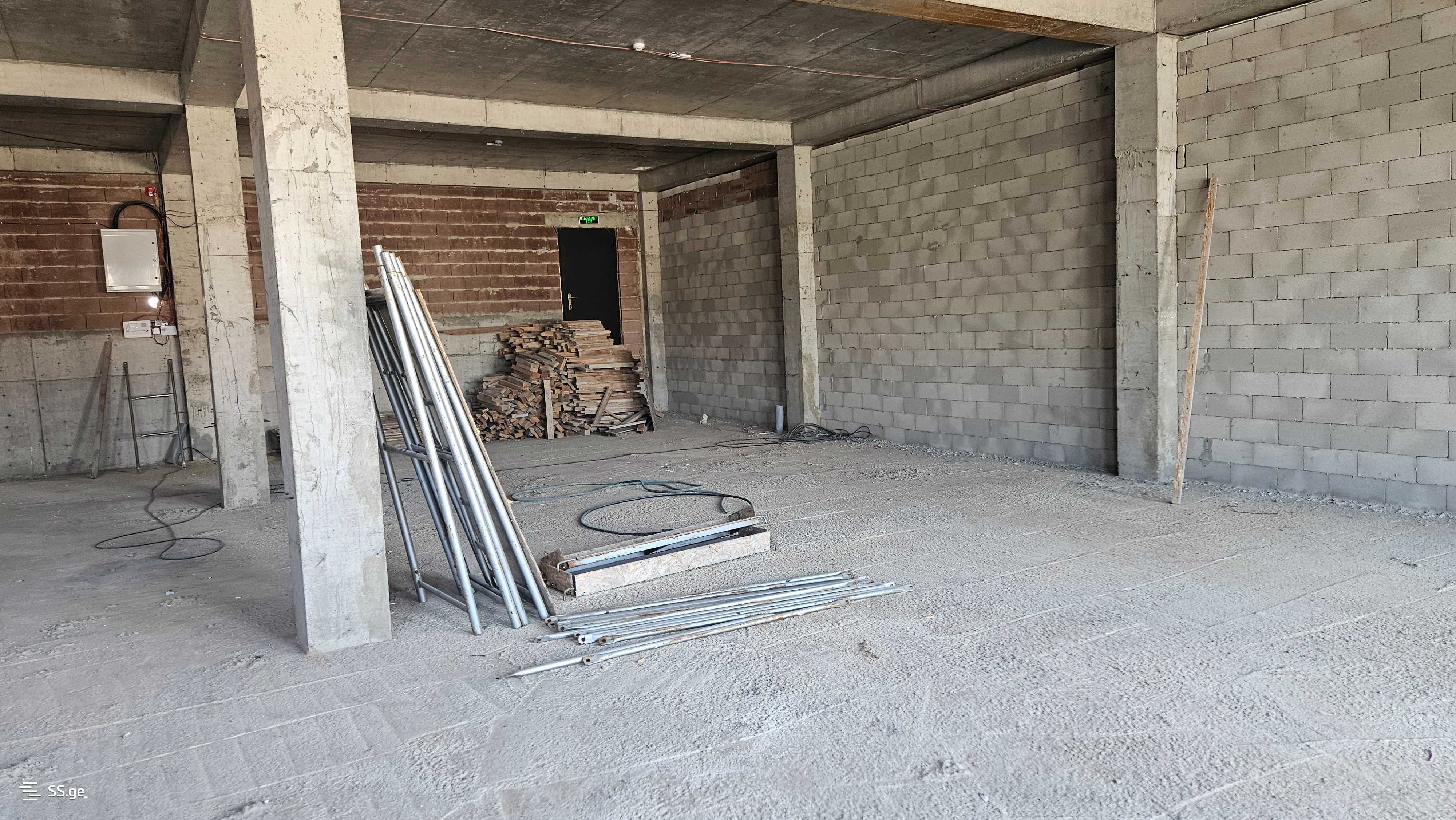 Two commercial spaces of 141 sq.m and 131 sq.m are available for rent in a newly built shopping center in Saguramo. Currently, there are no partitions between the spaces and they can be rented as a single unit. They are in a black frame condition. After renting, they will be renovated by us. All communications are connected.