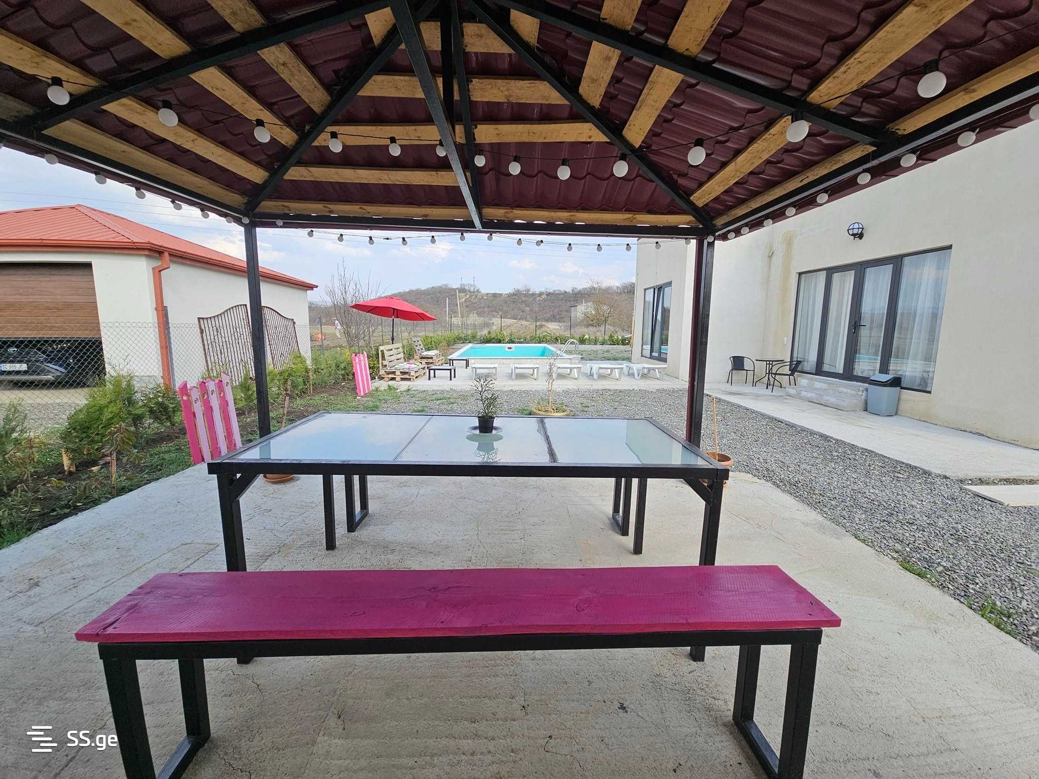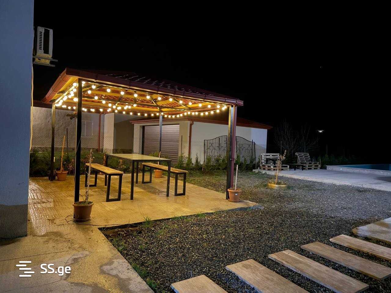 Two identical cottages by Bazaleti Lake. An ideal place for unforgettable days and nights with friends! Comfort and fun in one space. Perfect for parties, fully equipped with modern infrastructure. A quiet and picturesque environment. Each cottage is designed for 10 people. Price: Up to 7 people – 800 lari/night. Up to 10 people – 1000 lari/night. Minimum rental is 2 nights. Plan an inspiring getaway by Bazaleti Lake - where comfort, nature, and fun come together.