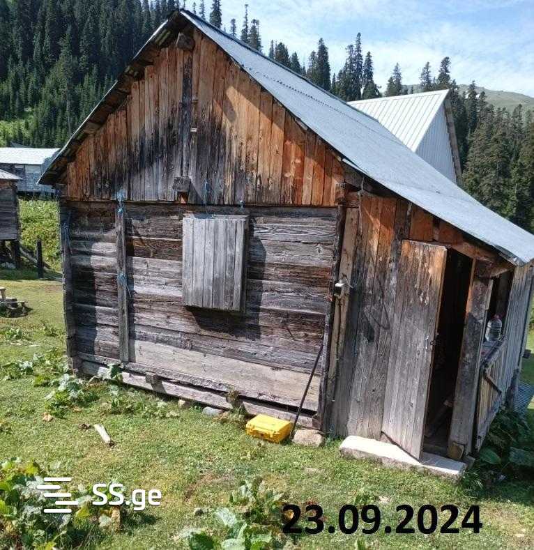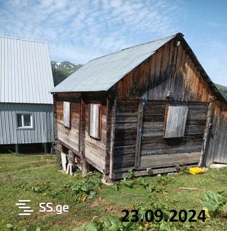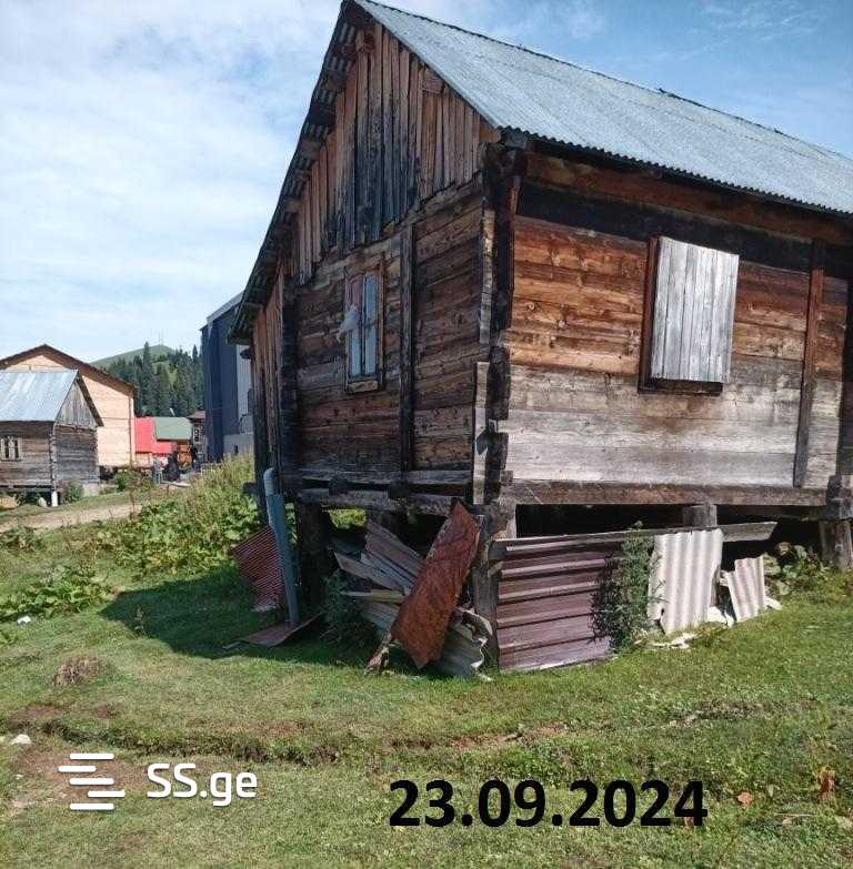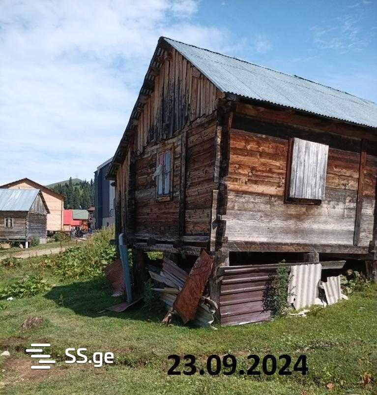 A cottage is for sale in Bakuriani, on Achara Street. Cadastral code 28.24.21.428 land plot with confirmed new sporadic registration, 132 sq. m. It has an old wooden plank house of approximately 35 sq. m with one bedroom (5 beds), a living room-kitchen, and wet utilities. We are leaving furniture and appliances (stove, refrigerator, beds, etc. The bathroom has hot and cold water).