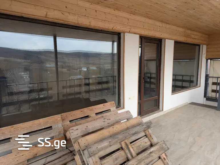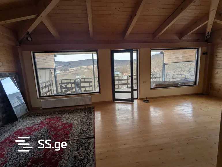 For sale. A cottage in Sioni (in the Tianeti region), land area of 1300 sq.m. The building is 285 sq.m. The cottage has been newly renovated, has a fireplace, pantry, and 2 bathrooms. It has central heating, water, and electricity. A huge yard with perennial fruit trees. Two large verandas on the second and third floors, with beautiful views of the mountains and the lake.