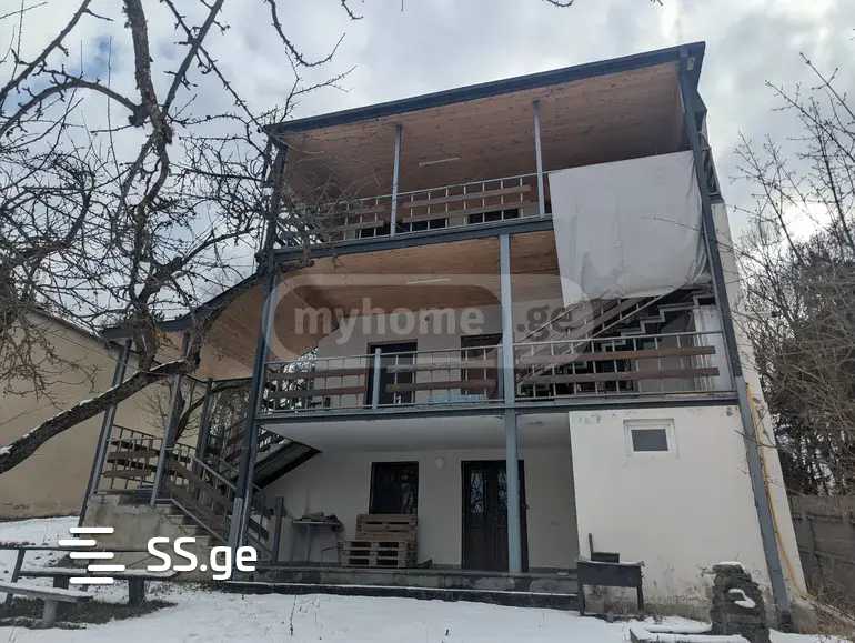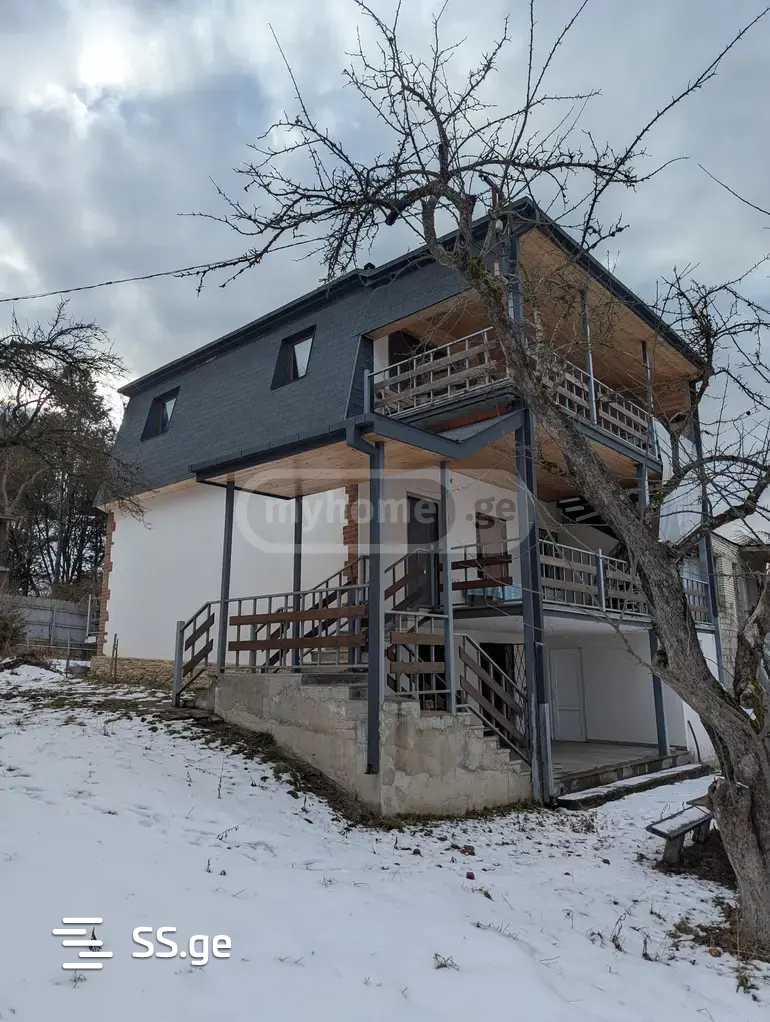 For sale. A cottage in Sion (in the Tianeti region), the area of the land is 1300 sq.m. The building is 285 sq.m. The cottage has been newly renovated, has a fireplace, a pantry, and 2 bathrooms. There is central heating, water, and electricity. A huge yard with perennial fruit trees. Two large verandas on the second and third floors, with stunning views of the mountains and the lake.