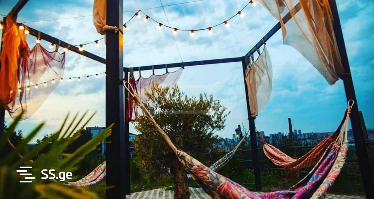 In Bugebi, in Metrapark, a catering facility is for rent, with furniture, equipment, kitchen equipment, parking spaces, a beautiful yard.
