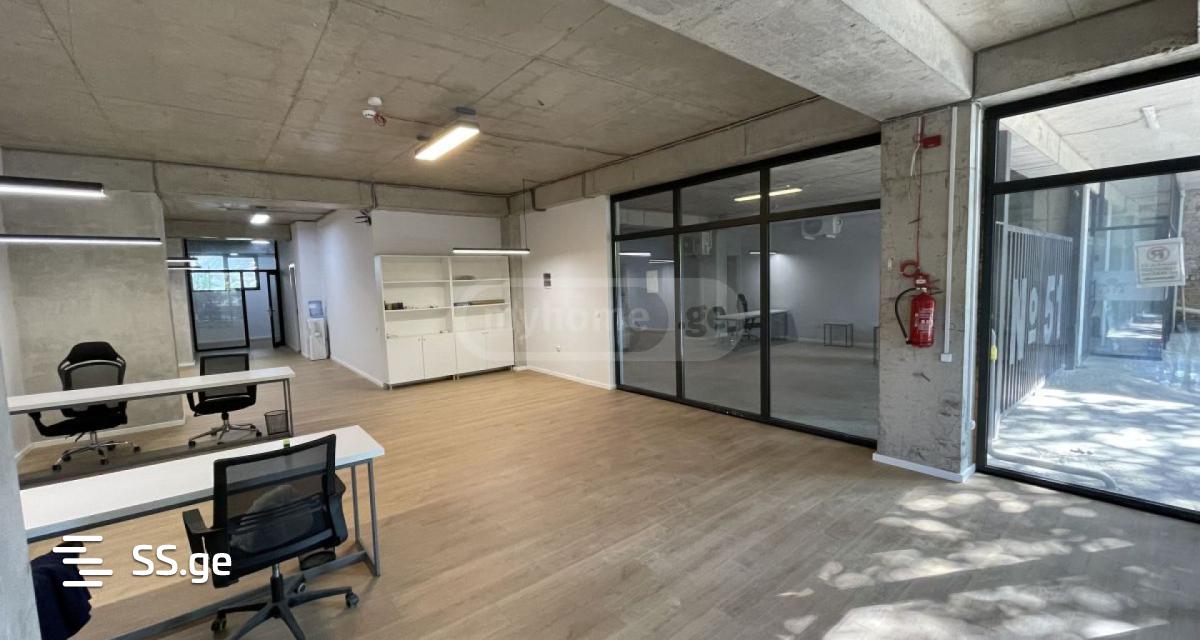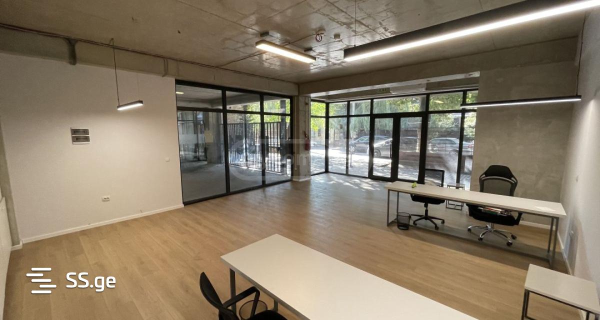 110 square meters of office space for rent on the first floor of a newly built building. The area includes: common hall; meeting room; kitchen and 2 bathrooms, as well as parking for one car. The space has its own entrance from Ninoshvilis street (not from the entrance, see the last picture). Very good location: opposite Hotel "Communal"/Restaurant "Veller"; 80 meters from "Honor" or Acharabet office; 700 meters to the "factory".