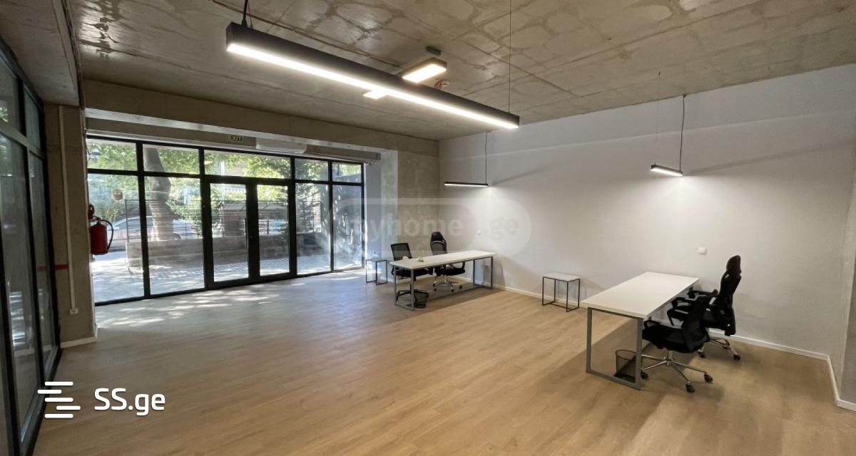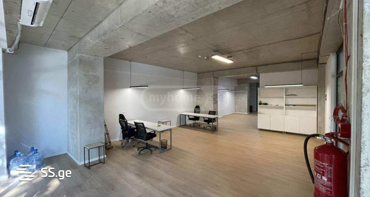 110 square meters of office space for rent on the first floor of a newly built building. The area includes: common hall; meeting room; kitchen and 2 bathrooms, as well as parking for one car. The space has its own entrance from Ninoshvilis street (not from the entrance, see the last picture). Very good location: opposite Hotel "Communal"/Restaurant "Veller"; 80 meters from "Honor" or Acharabet office; 700 meters to the "factory".