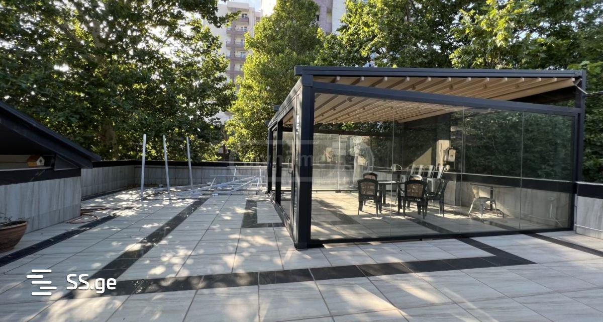 The space is located 100 meters from Sokar's headquarters. It consists of three floors, the first includes a veranda and a winter garden. On the next floor there is a living room, 1 large room (currently a bedroom), a bathroom and a kitchen. On the last, third floor, there is 1 large room (with kitchen), bathroom. From the top floor, you go up a small staircase to an additional room (currently a bedroom). The space also has two balconies and a small yard. (60 m2) is air-conditioned and it is considered if necessary to leave part of the furniture.