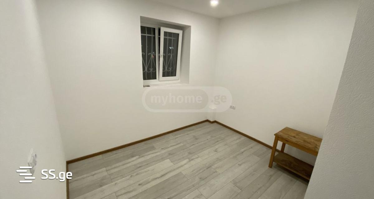 Commercial/office space for rent on Kartozia Street, entrance from the central road. (Can also be used as a warehouse) If desired, I will consider adding office furniture and a kitchen. The price includes 2 parking spaces. It has a yard with a barrier. It has a bathroom with toilet and shower. The renovation was completed this month. Never rented. In-wall wiring includes internet cables. The surrounding walls are 60 centimeters thick. The price can be negotiated.