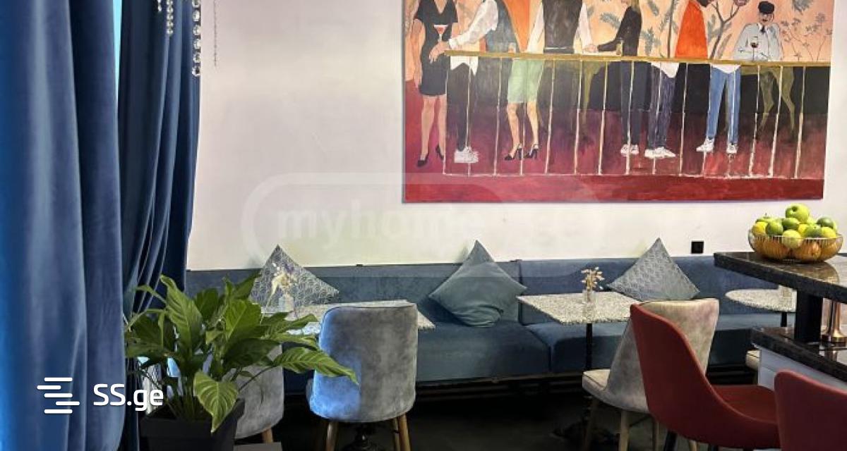 Commercial space for rent in the center of Tbilisi, 3 minutes' walk from Freedom Square * Room area is 75 square meters * 30 seats in this room: • 2 halls * Guest toilet * Kitchen room * Staff toilet * Utility room The room is equipped with: * Furniture * Supply and exhaust system * Air conditioner 2 pieces * in the kitchen there is a hood with a dome * alarm system * Internet * electric generators * pastry showcase * bar counter made of natural stone * music is distributed throughout the room, has the ability to change in each separate zone, as well as connection to DJ equipment available for rent existing kitchen and bar equipment