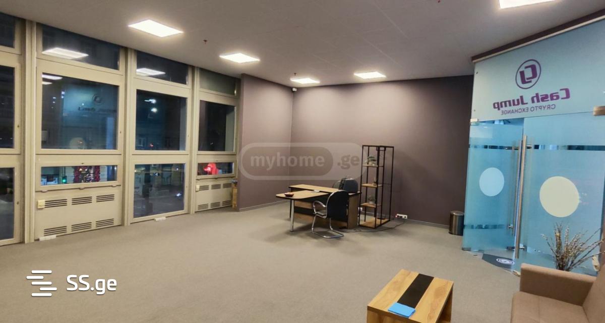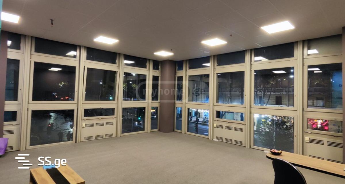 Universal office space for rent, in Pixel business center. Stained glass windows overlook Chavchavadze and you can advertise your company.