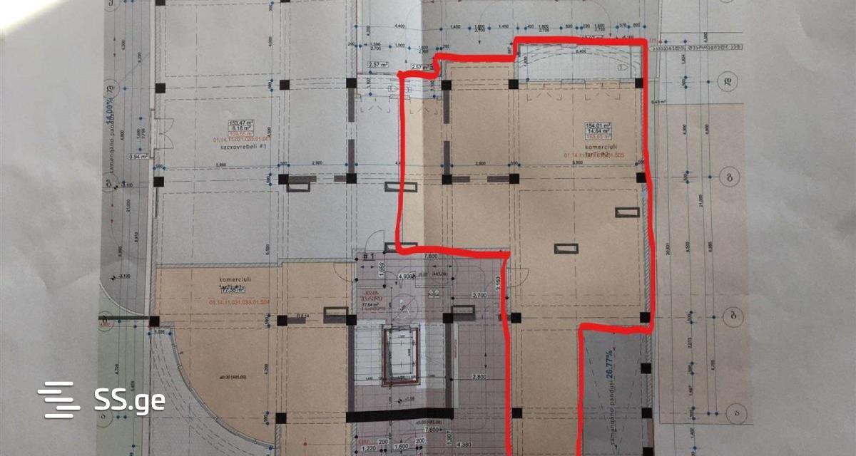 For rent in Vake, Mtskheti Street, 171 sq.m. Commercial-retail-office space with independent entrances from the sidewalk and the entrance hall. Black frame in a newly built building.