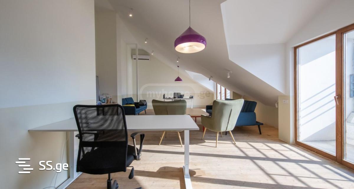 A suitable office for a growing company is for rent in the heart of Tbilisi. A successful Georgian startup has already been born and grown in this office. 25 meters away is the printing house, Rumsi, Lolita. There are many food establishments and street parking within a 150 meter radius; Rustaveli metro station is 300 meters away. The office is located on the third and fourth (last two) floors, with this configuration it can accommodate up to 45 people, although it is possible to increase it by changing the configuration. You will find furniture and appliances.