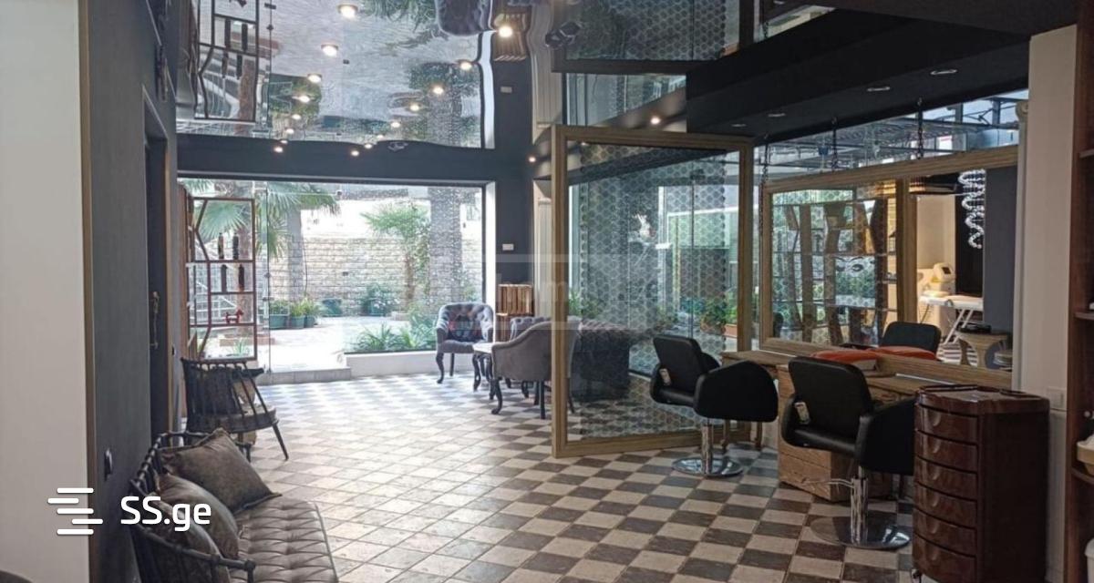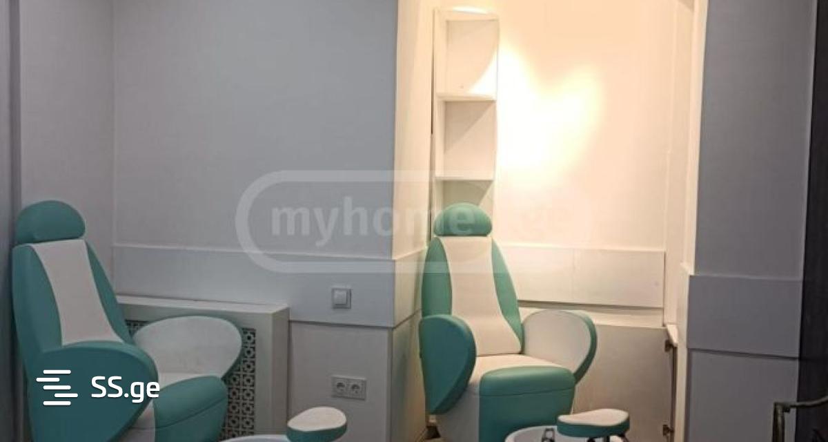 110 sq.m. for sale in Saburtalo, Shanghai settlement. Commercial space with high quality renovation. The space is divided into 5 independent workspaces + kitchen. This space has 2 bathrooms and 2 gardens, open and closed. (Equipment is new): • 2 Creo machines (fat remover) • 1 RF machine (cellulite remover) • 1 hair removal machine • 1 facial acne cleaning machine • 1 wrinkle remover machine • 2 massage tables for body and face • 1 Cheriot head washing chair • 1 dry sterilizing device for combs • 2 stylist's workplaces with cheriot chairs, handmade wooden mirrors and tables. • 3 manicure tables with built-in hoods • 2 Cheriot leather pedicure chairs. • 10 cameras with voice control function, 3 external and 7 internal + server with 1 month storage capacity. • 2 air conditioners for winter and summer • Central heating boiler • Furniture, stove and hood are installed in the kitchen.
