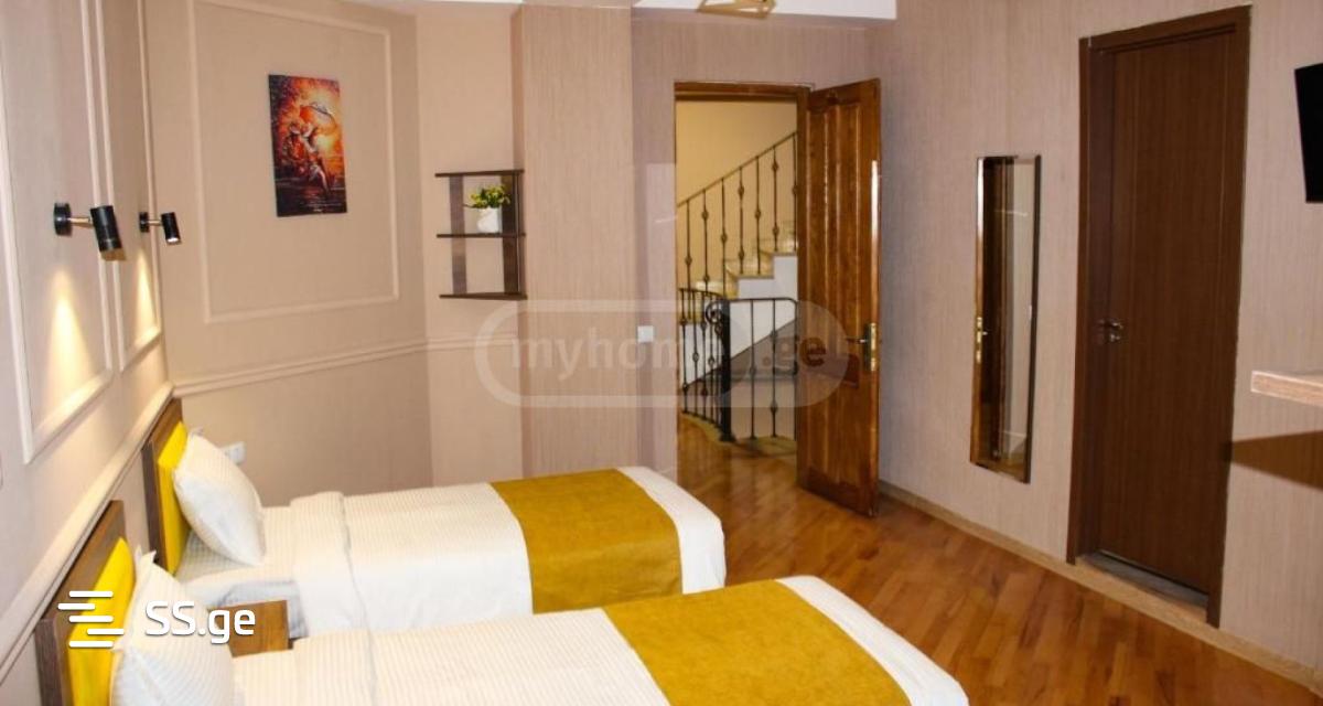 ქირავდება სასტუმრო ტურისტულად აქტიურ ზონაში აბანოთუბანი, გრიშაშვილის ქუჩა.სასტუმროს აქვს სულ 8 საძინებელი, ასევე ტერასა, ქალაქის საუკეთესო ხედებით, პატარა მარანი და შესასვლელი ეზო. სასტუმროს აქვს სულ ხუთი სართული, პირველ სართულზე არის მისაღები, მოსასვენებელი ოთახი და მარანი, მეორე, მესამე და მეოთხე სართულზე გადანაწილებულია სასტუმროს ნომრები, მეხუთე სართული კი უკავია, სამზარეულოს, სასადილო ოთახს (სამზარეულო და სასადილო ოთახი აღჭურვილია ყველანაირი ინვენტარით) და ტერასას.სასტუმროში თითოეული ნომერი აღჭურვილია კონდიციონერით, გარდერობით, ბრტყელეკრანიანი ტელევიზორით, მაცივრით, სველი წერტილით, თეთრეულით, პირსახოცებით და დეკორაციითაც კი. სასტუმროს საუკეთესო ნომერ აქვს ჯაკუზი და დუში, ქალაქის ხდით. სასტუმრო წარმატებით მუშაობს დღემდე და ყავს თავისი ერთგული სტუმრები.სასტუმრო არის იდიალურ მდგომარეობაში არ საჭიროებს არაფრის დამატებას ან გარემონტებას. სატუმროს აქვს აწყობილი და აბსოლიტურად გამართული booking.com –ის გვერდი. შეგიძლიათ სასტუმრო იქირაოთ დღეს და დაიწყოთ საქმიანობა დღესვე.