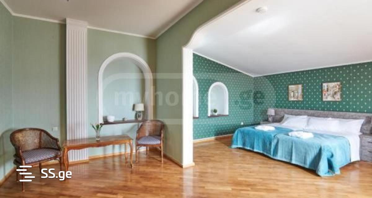 The hotel is located in Zemo Vedze, Meri Davitashvili 41, Saburtalo district. The hotel has 4 floors with the best panoramic views of Tbilisi. Hotel rooms meet modern standards, with high-quality elegant and ecological furniture, air conditioners, central heating, balconies, city views, cable channels, safe, minibar, bathrooms, bathroom accessories. The hotel area is 1200 sq.m., it includes 12 rooms of 3 different types with balconies, kitchen, living room, hall, guest room, tea room, Georgian wine cellar, 2500 sq.m gardens, outdoor swimming pool and bar.The hotel has the following types of rooms:Family room 39 m² area (2 + 2), with a balcony overlooking the city.Standard double room, 25 m² area with a balcony overlooking the city.Non-smoking room, 30 m² area, (2 beds + 1), with a balcony and a view of the city.