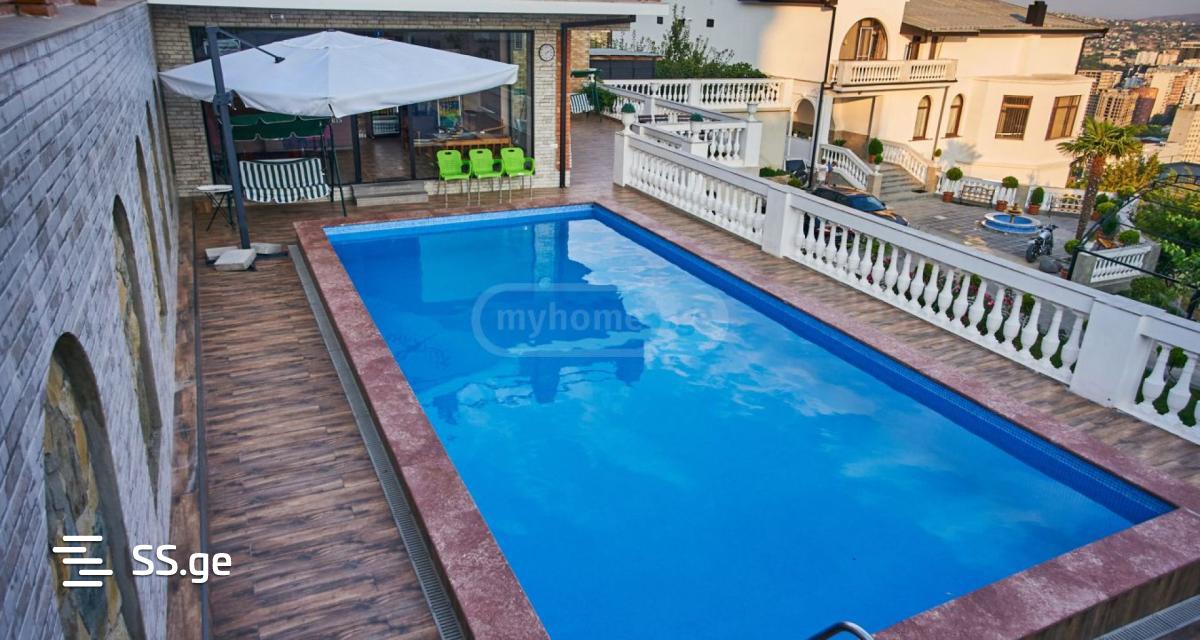 The hotel is located in Zemo Vedze, Meri Davitashvili 41, Saburtalo district. The hotel has 4 floors with the best panoramic views of Tbilisi. Hotel rooms meet modern standards, with high-quality elegant and ecological furniture, air conditioners, central heating, balconies, city views, cable channels, safe, minibar, bathrooms, bathroom accessories. The hotel area is 1200 sq.m., it includes 12 rooms of 3 different types with balconies, kitchen, living room, hall, guest room, tea room, Georgian wine cellar, 2500 sq.m gardens, outdoor swimming pool and bar. The hotel has the following types of rooms: family room 39 m² area (2 + 2), with a balcony overlooking the city. Standard double room, 25 m² area with a balcony overlooking the city. Non-smoking room, 30 m² area, (2 rooms + 1), with a balcony and a view of the city.