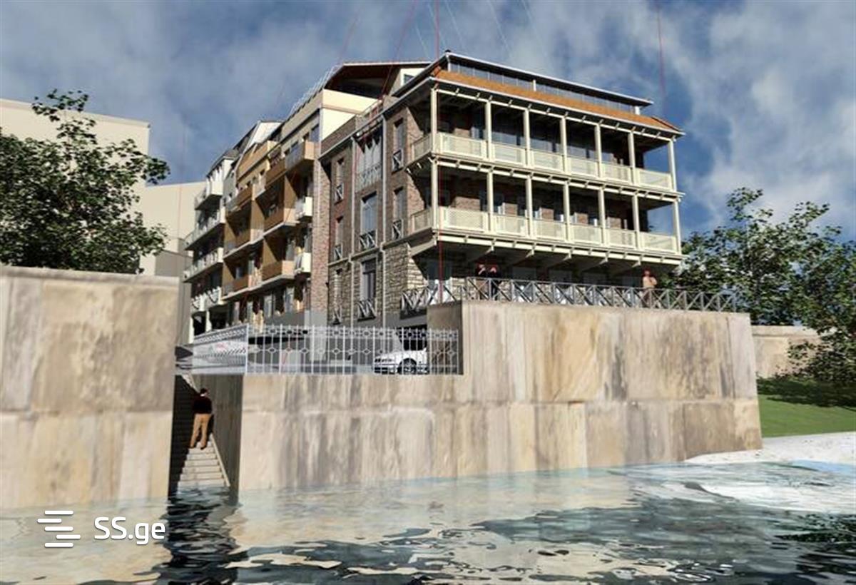 For sale 60 sq.m apartment (black frame) in the central district of Kutaisi near the White Bridge, on the 4th floor of a 5-storey building with a view of the Rioni River. Construction is completed, utilities are connected and the yard finishing process is ongoing. I have another apartment of 51.5 sq.m (white frame) on the 5th floor.