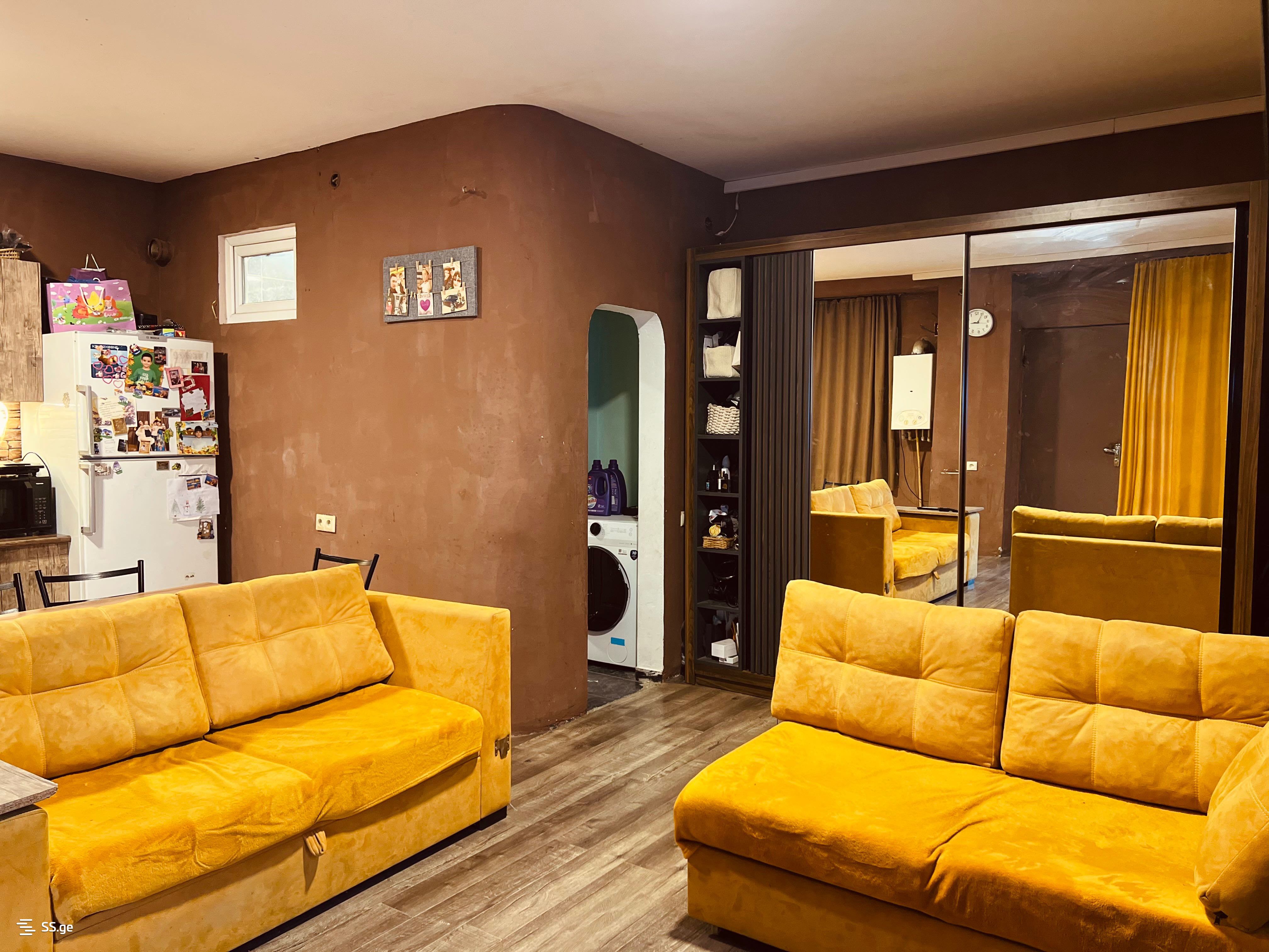 I am the owner. An apartment is for sale in Gldani with furniture. On Hero Cadets Street, in a very cozy place. The apartment has central heating, air conditioning. The apartment has an isolated entrance, no entrance from the stairwell. It also has a fenced yard and a covered balcony. The area of the yard and balcony is 40 square meters. A car can easily enter. The price is final!