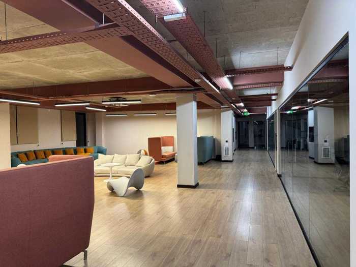 Commercial space for rent on the first floor of the business center on Gamrekeli Street in Saburtalo, 480 square meters with a basement, large stained glass windows, two separate entrances, it is possible to divide it into two. Suitable for showroom, supermarket, clinic and any activity. The price is 20 dollars without VAT.