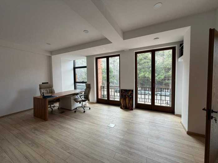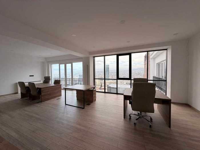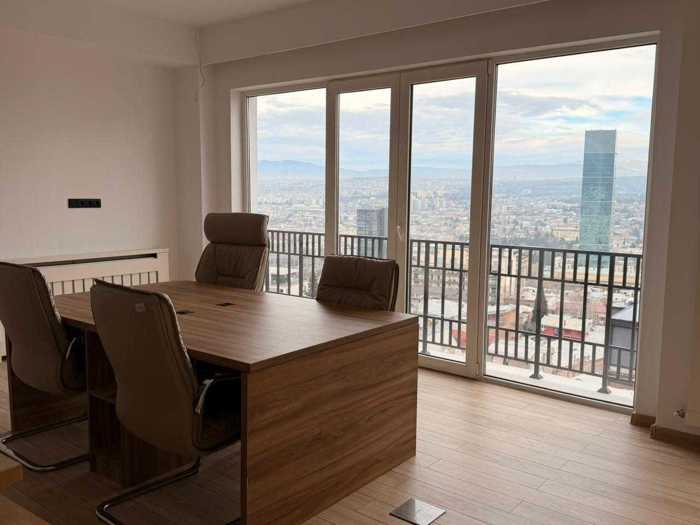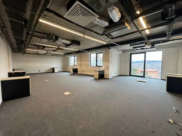 Renovated office space for rent on Polikarp Kakhavadze Street, 4 rooms (possible to redesign with drywall if more rooms are desired), interior area is 140 square meters, has balconies and beautiful views of the whole of Tbilisi, also has a kitchen, for rent without furniture.