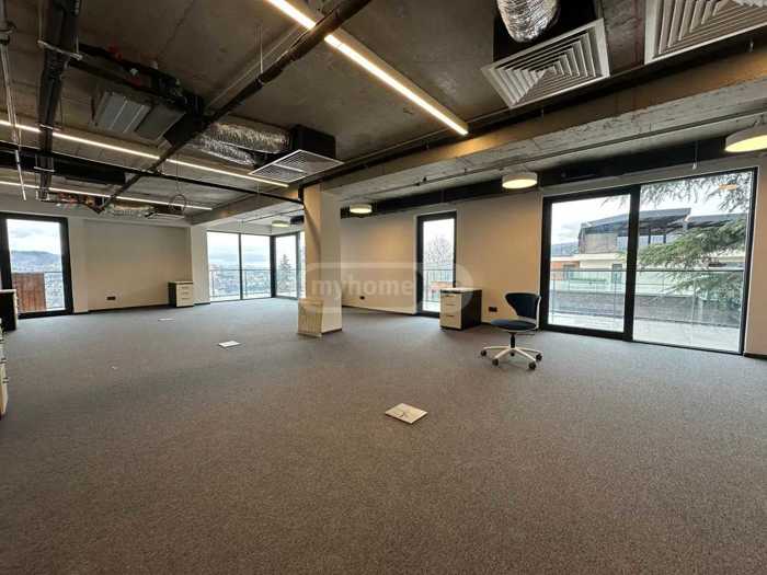 An office space is available for rent on Mtatsminda, Kakabadze Street, on the 2nd floor of a 6-story building, with a total area of 320 m2. It has 5 working rooms, a kitchen, and 2 bathrooms. There are 2 balconies with a beautiful panoramic view of Tbilisi. There is a restaurant on the top floor of the building, which creates an ideal space for business meetings. The space has been newly renovated. It is rented with partial furniture. The price is $30 per m2 equivalent in GEL + VAT.