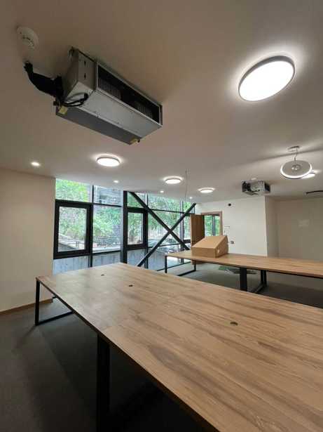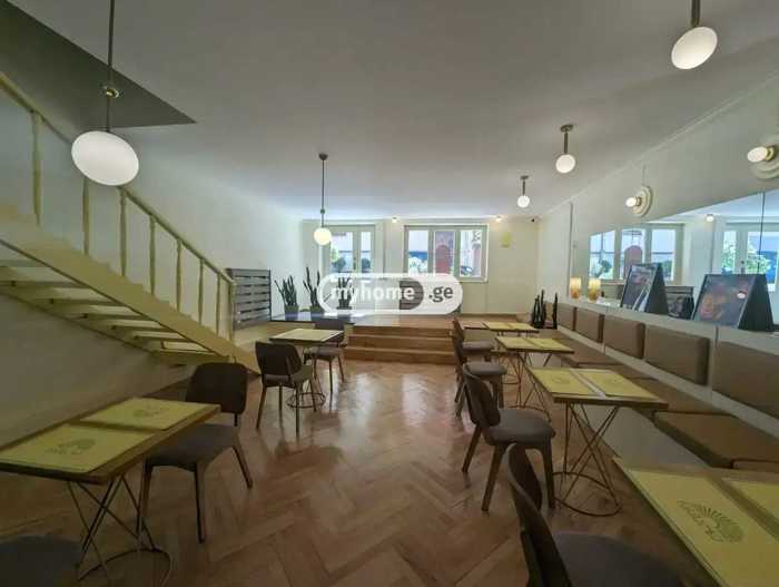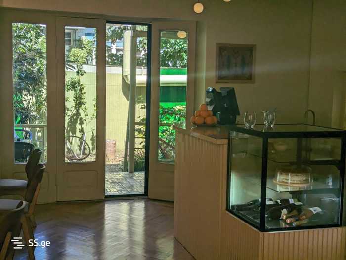 Urgently for rent! A two-storey private house/commercial space is for rent in a very quiet and nice street near Vake Park. It is ideal for a café, coworking space, hostel, yoga center, birthday party center, exhibition space, or for office or living. The commercial space is equipped with the inventory and furniture necessary for a café: a bar, exhaust system, washbasin, kitchen, storage, refrigerators, small and large appliances, dishes. The space has an inner green yard (80 sq.m).