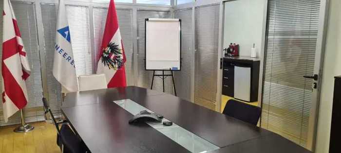 Office space of 85 sq.m is for rent in the "Tbilisi Business Center". The business center is a 16-story multifunctional building, which accommodates both office and commercial spaces, has conference rooms, technical and sanitary services, reception, and 24/7 security services. Some furniture remains in the office.