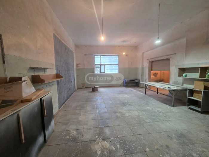 Industrial warehouse space for rent in Vazisubani. Tiles are laid on the floor and walls throughout the building. It has its own secluded yard. It is possible to renovate the space in the case of a long-term contract