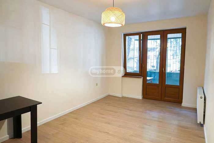 A space/apartment is available for rent on Saburtalo, on Khvichia Street, on the first floor of an eight-story building. The area has been newly renovated, with a built-in kitchen (to be installed in 2 weeks) and appliances, without furniture. The total living area is 70 sq m, plus an additional 20 sq m balcony. The apartment is suitable for both office use and living.