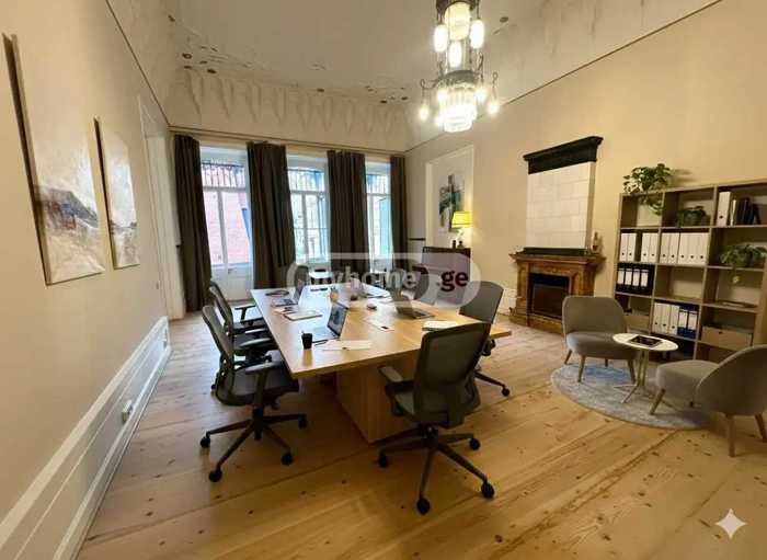 ეს ულამაზესი, სრულად აღდგენილი ისტორიული ბინა გთავაზობთ 100 კვ.მ. ელეგანტურ სივრცეს და შესაძლებელია გამოყენებულ იქნას როგორც საცხოვრებელი ბინა, ასევე ოფისი. ქონებას აქვს ფართო მისაღები ოთახი შთამბეჭდავი 4.80 მ სიმაღლის ჭერით. დეკორატიული ისტორიული ჭერი საგულდაგულოდ არის აღდგენილი და წარმოადგენს არქიტექტურულ თვალისმომჭრელ აქცენტს. ბინა ამჟამად სრულად კეთილმოწყობილია საცხოვრებლად და მოიცავს საწოლს, სასადილო მაგიდას, დივან-საწოლს და ახალ, თანამედროვე ტექნიკით აღჭურვილ სამზარეულოს. საძინებელი განთავსებულია ანტრესოლის დონეზე, რაც ქმნის ელეგანტურ და ფუნქციურ განლაგებას. სურვილის შემთხვევაში, არასაჭირო ავეჯის გატანა შესაძლებელია და სივრცის მოწყობა ოფისის ფორმატშიც (იხილეთ საცდელი ფოტოები). შენობის ეზოში ხელმისაწვდომია უფასო პარკინგი.