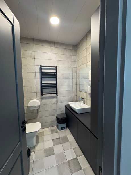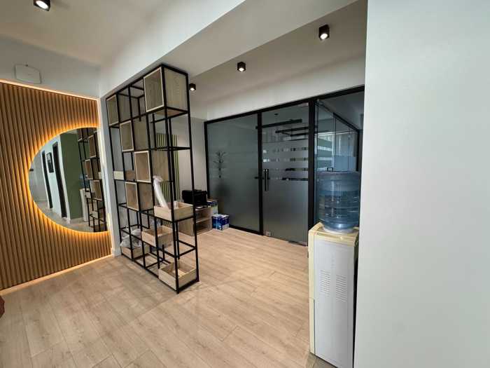 Office space of 110 m² is for rent. If interested, we can offer you office spaces of various sizes: 25 m², 40 m², 75 m², 100 m², 110 m², 150 m², and 300 m². Layout: conference room, 7 isolated work rooms, kitchen, 2 bathrooms. The spaces are ideal for small, medium, and large companies. Customization of the space is possible to meet your business needs. The building is equipped with all necessary communications and infrastructure. It has a large yard with parking spaces. On the first floor, there is already an operating grocery store, and soon a pharmacy, a bookstore, and a comfortable cafe-restaurant will be added. There is a McDonald’s located within a 500-meter radius. Rental price: starting from $8 per m² (excluding VAT).