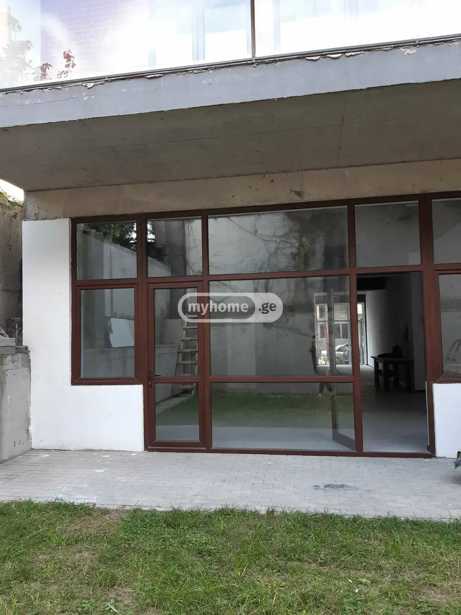 Commercial space for rent on Oniashvili Street in Saburtalo, Tbilisi. The inner area is 207 square meters and additionally there is an outdoor space of 100 square meters at the back.
