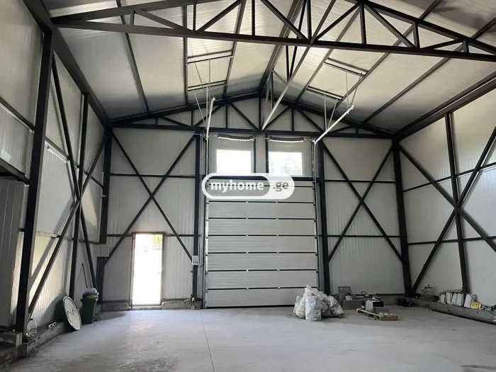 Warehouse/production space for rent in the industrial zone. 3 kilometers from Kvemo Fonichal. The space is newly renovated. One hall is 1200 square meters (ceiling height 7 meters). The price per square meter is 8 GEL.
