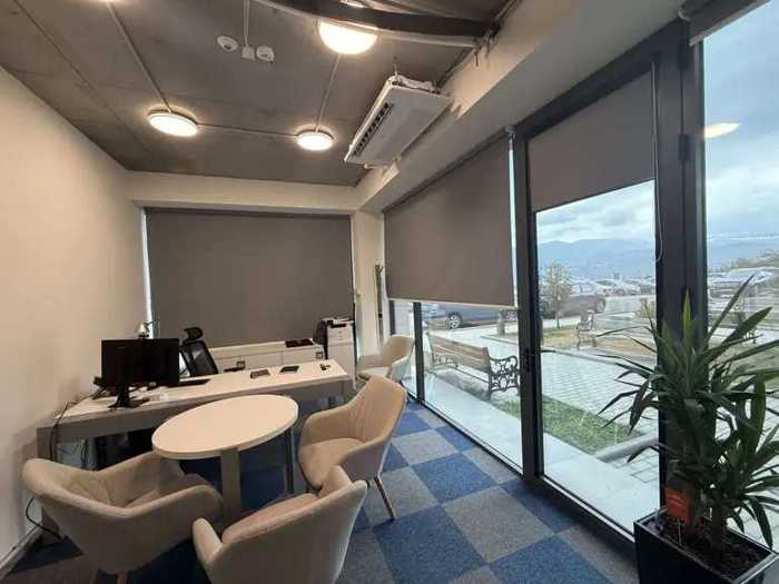 Renovated office/commercial space of 520 sq.m with a view of the whole city, with electricity and internet connection, underfloor heating, heating and cooling system, ventilation, fire safety, surveillance cameras around the perimeter, separate isolated kitchen with its furniture, 2 wet rooms, large server room, parking for 8 cars.
