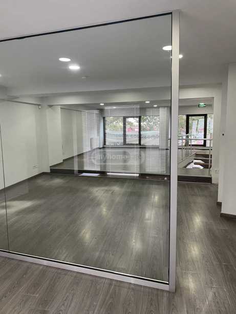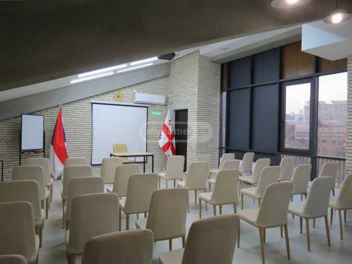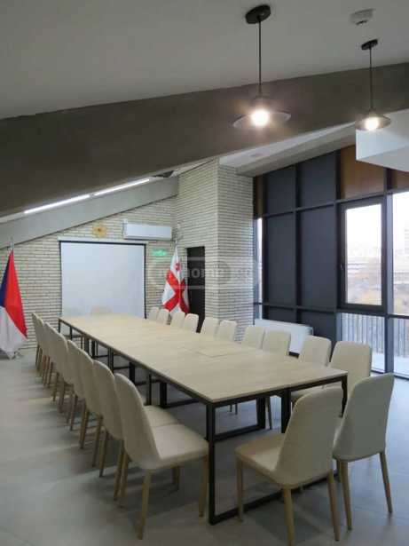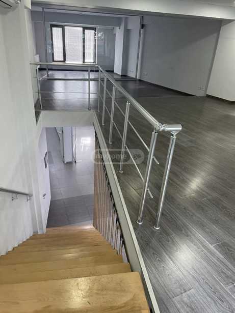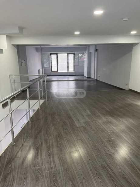 For rent in Bagebi 85+43 (mezzanine) sq/m commercial glazed space, renovated, the furniture visible in the pictures has been removed, room with a safe. One bathroom with wet rooms. Price $1500 + income tax. In a busy and crowded location.