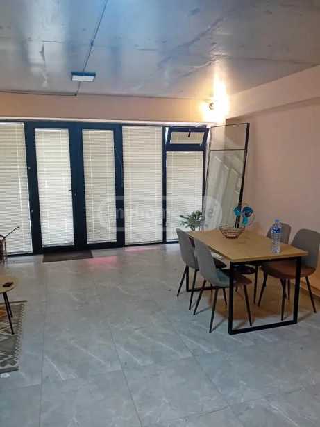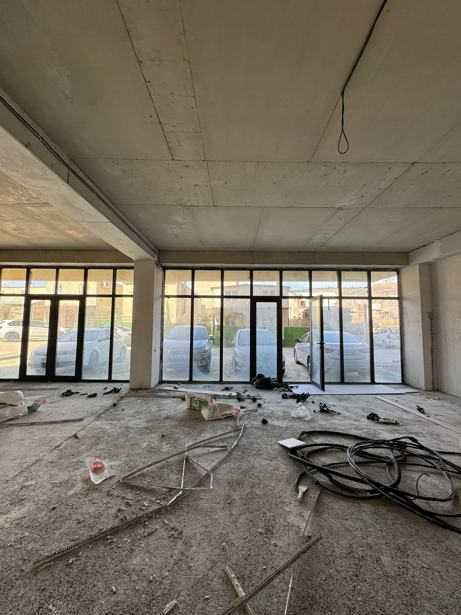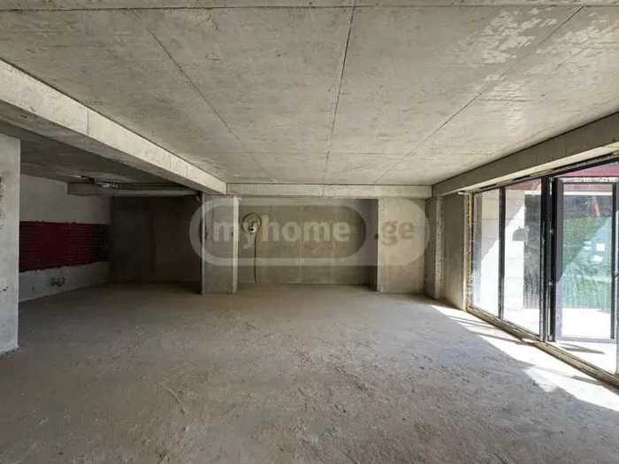 For rent in Digomi, a commercial space with high ceilings on the 1st floor of a newly built building, the area is 123 sq. m, where it is possible to create a mezzanine based on the ceiling height, 1 restroom. It can be used as a retail space as well as an office. The price is indicated without taxes.