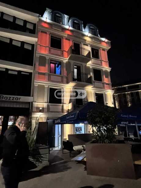 A beautiful separate 6-story building is for rent on Orbeliani Square. On the first floor, there is a café; on the minus floor, there is a kitchen, and on the other upper floors, there are hotel rooms. It has a total of 1 café and 4 rooms, with 4 rooms on each floor. Contact us.