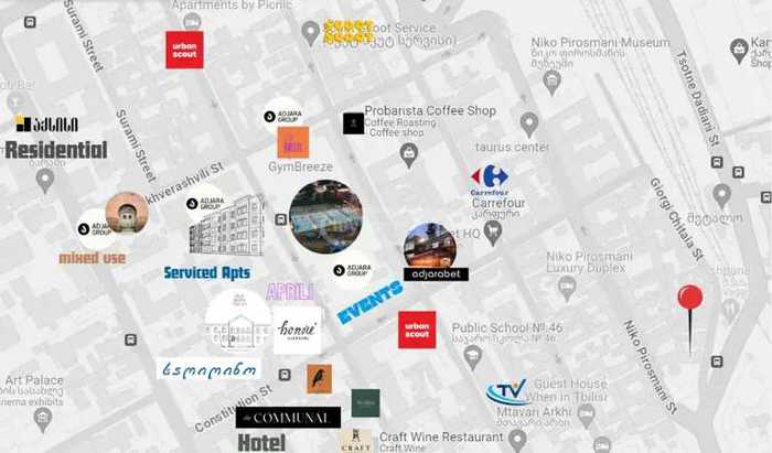 For rent is a separate 3-story commercial building with a yard in Chughureti, near Niko Firosmani Square, at #26 Giorgi Chitaia Street. The object is located very close to the Council Square, which provides easy transport accessibility. The building previously functioned as a kindergarten and later as a hostel, and is now being transformed into a modern office space. The total area of the building is 540 sq.m; without the staircase cell it is 520 sq.m. (-1 floor: 142 m²; 1st floor: 184 m²; 2nd floor: 194 m²), plus two additional yard areas of 122 sq.m and 46 sq.m. Currently, renovations are taking place in the building, and it will be provided in the so-called white frame condition ("soft-finished white frame"). The space will be delivered in a more finished condition than a standard white frame – industrial flooring, industrial ceiling, new aluminum doors and windows, basic electrical wiring, completed wet points, wooden panels on the walls, and a kitchen area – which practically implies only minor intervention by the tenant. MEP in agreement with the tenant. It is possible to rent the building either entirely or partially. The rental price is $18 per sq.m. excluding VAT. The minimum lease term is 3 years.