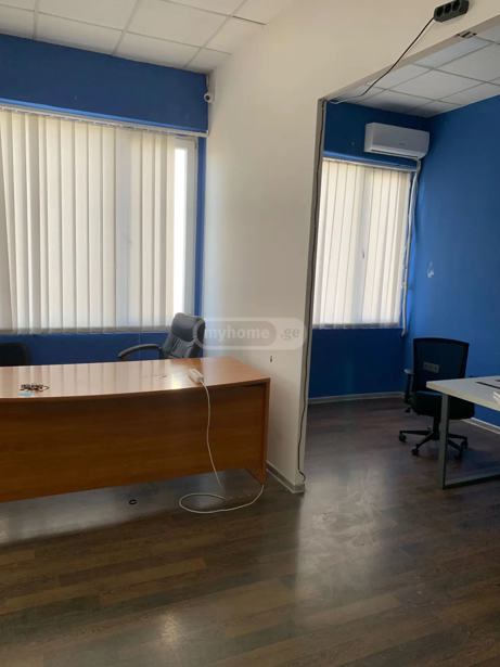 For rent in Saburtalo, a commercial office space of 100 sq.m with 3 rooms, including one conference room. It has repairs, central heating, air conditioning, parking, and an entrance directly from the street. Suitable for office use. Located directly on the prospect near the Polytechnic metro station; great for an aesthetic center for makeup and nail polish training at the super building with security in Pekini Plaza. Ideal for law offices and auditoriums on the 6th floor.