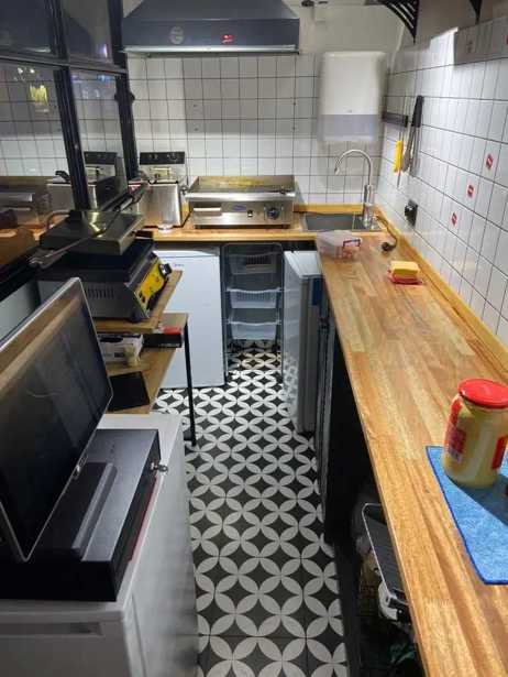 Commercial space for rent in a very crowded and busy area of Beijing. It has an entrance from the street, the photo shows two entrances, both belong to this area. There is a white frame.