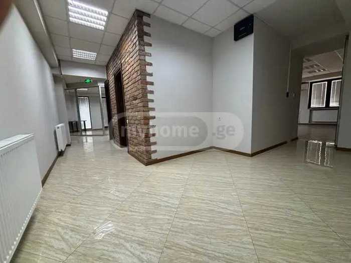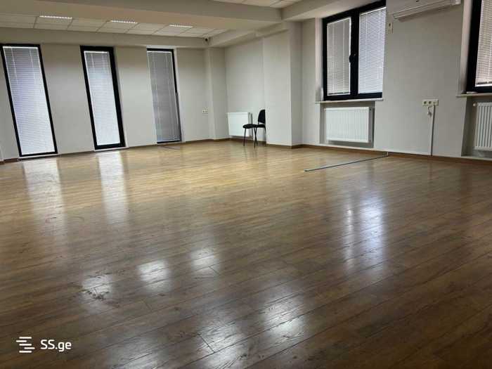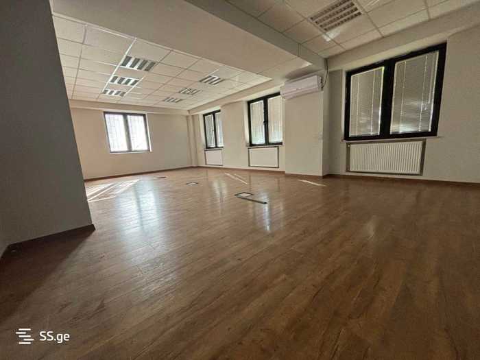 Office commercial space for rent in Saburtalo, near the television center. Renovated, with three bathrooms, a kitchen, and six workspaces. VAT is added to the price.
