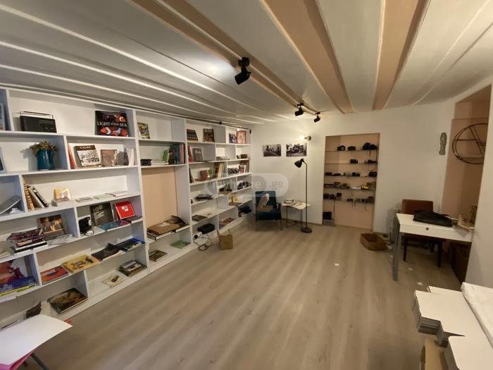 A universal commercial space is for rent in Sololaki, at the end of the rising street on the last slope street. Newly renovated, a bookstore operated in this space. It has its own entrance from the street, as well as a small space in front where a table and chairs can be set up as desired. The restroom is outside, right there. Utilities are included in the price.