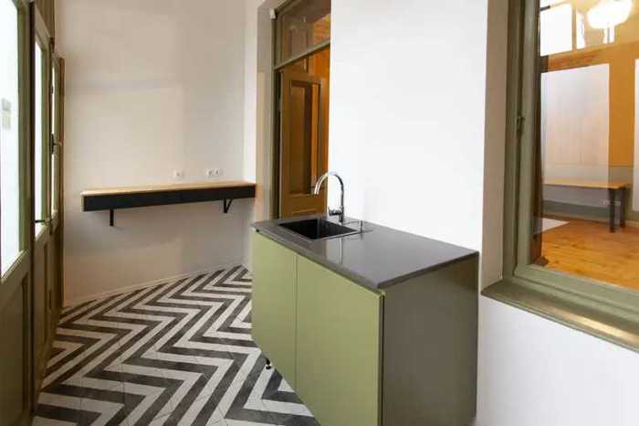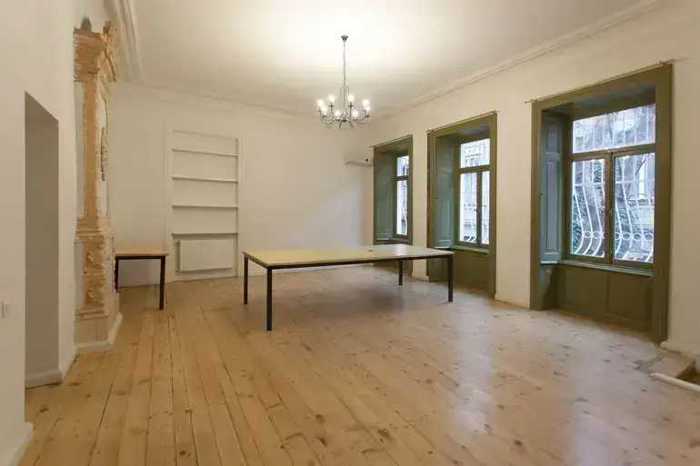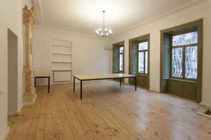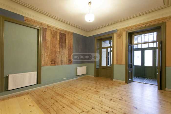 For rent: 100 sq.m office space in Sololaki, located on the first floor of a beautiful historical house, with entrances from both the street and the yard. It is newly renovated and restored. The details of the wall painting have been preserved. Available for rent for a minimum period of one year and the rent is 1100 dollars per month.