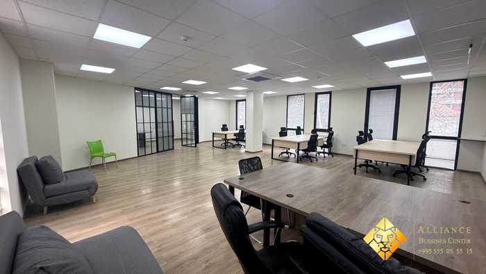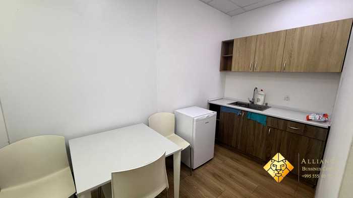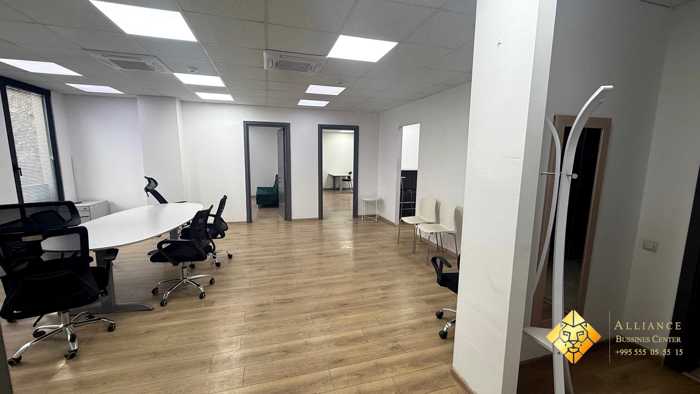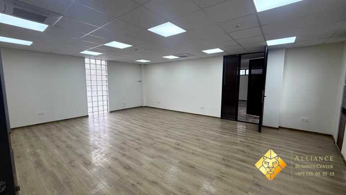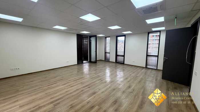 In Saburtalo, an office space of 100 sq/m is available for rent in a business center. The building meets all modern requirements: - Security - Cleaning - Central heating and cooling system - Reception - Veranda on the top floor and cafeteria The space is renovated and ready to be taken by a tenant. Price: $2500