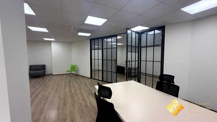 Office space of 106 sq/m is available for rent in Saburtalo, in a business center. The building meets all modern requirements: Security Cleaning Central heating and cooling system Reception Terrace on the top floor and cafeteria The space is renovated, ready for the tenant to move in. Price: 2650$