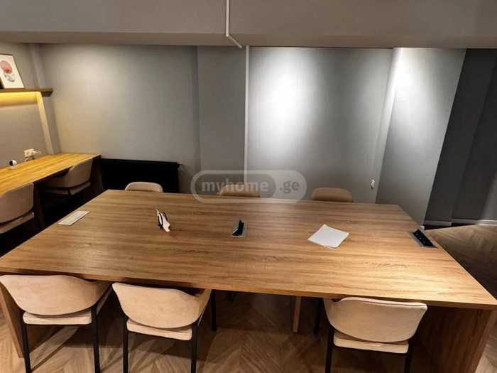 Office space for rent 140 square meters on the second floor and 60 square meters semi-basement which is divided into three rooms that only require painting. Parking for 5 cars in a fenced yard. 100 meters from Rustavi with the possibility of discussion on renovation.