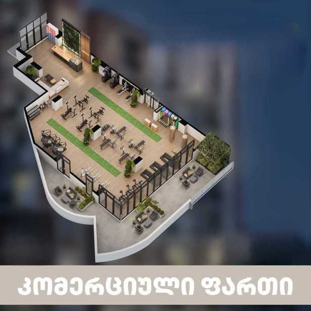 For sale is the first floor of a newly built building with an area of 184 m2. The height of the floor is 3.4 m. The space is suitable for commercial, office, medical center, fitness, and other entrepreneurial activities. Address: Broceliande #3. Behind Agrohub on Marshal Gelovani. Business license number 01.10.11.001.128.01.02.500.