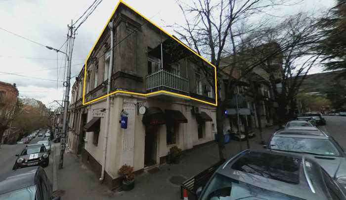 For sale is an old house in the tourist zone at the corner of Agmashenebeli Avenue and Mazniashvili Street. Agmashenebeli Avenue 47/3. The area of the approved project is a total of 430 sq. m -- 0 floor with windows half basement. First floor, second floor, and third floor - terrace on the roof. Entrance from Mazniashvili Street. A completely independent building from the basement to the roof terrace. The building can have a small yard - 100 sq. m where access is only from this building, but the yard is common on the cadastral code. The building is registered under an individual's name. Owner