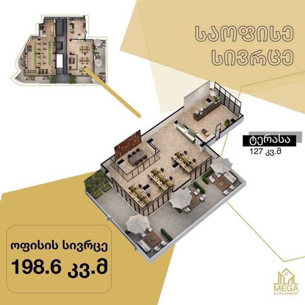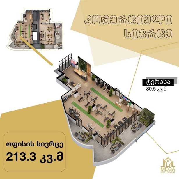 Commercial space for sale in black frame, includes a veranda of 127 sq.m as a gift!!! It can be used for commercial, office, and sports hall purposes. Next to Greenways, there is a crowded area, and on the territory, there are two buildings with 160 apartments, while nearby there are new constructions that will facilitate the development of any business. The area has a recreational zone of 1700 sq.m, which includes entertainment and relaxation spaces, making it ideal for the development of commercial activities.