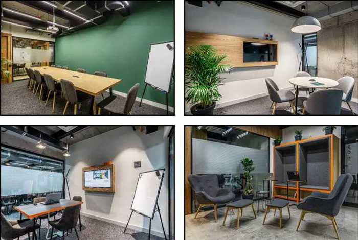 The office space is renovated. It is equipped with office furniture. The price of the space also includes 30 parking spots. It is currently rented out.