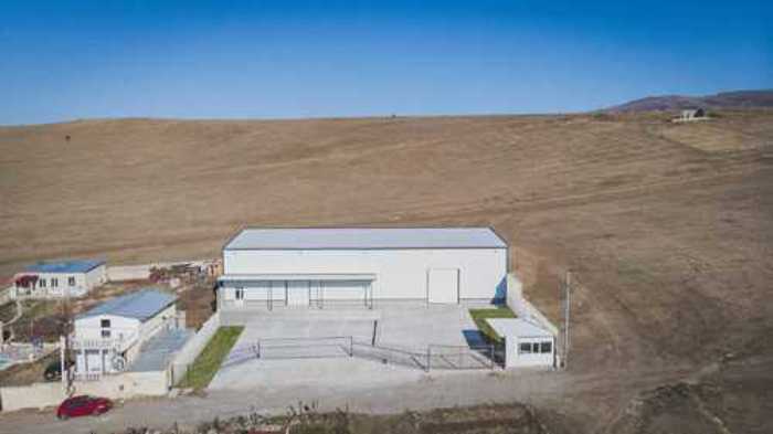 A warehouse space of 805 square meters is for sale near Tbilisi Sea, close to the Varketili farm. The land plot is 1500 square meters, and the ceiling height is 8.5 meters. It is located 150 meters from the main road, which is paved with asphalt. The warehouse has a ramp and a large entrance door, as well as 2 office spaces, a restroom, and sewage. A three-phase electric power supply is installed. The outer perimeter of the warehouse, as well as the interior space, is equipped with a video camera system.