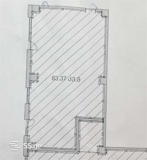 83.37 sq.m universal commercial space for sale in Vake on the 1st floor of Kalasi residential complex (next to Samkharauli) with large stained glass windows. The space has a square in front, the ceiling height is 4.80 m, sunny, bright space, it is possible to make a mezzanine.